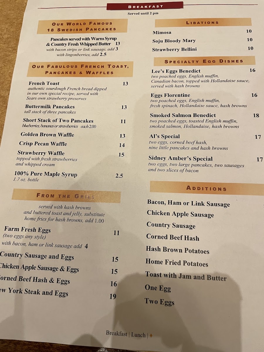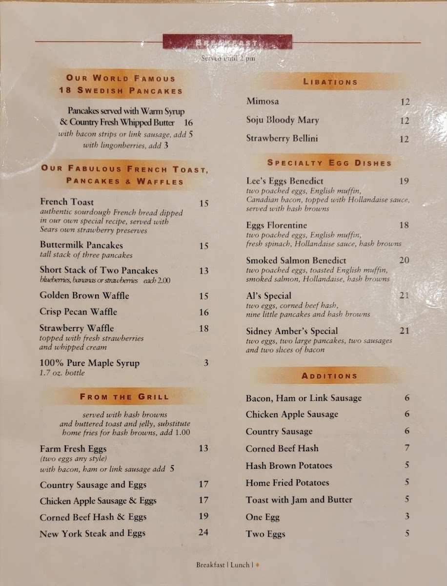 Welcome to Sears Fine Food, a cherished gem in the heart of San Francisco, located at 439 Powell St. This iconic eatery—operating since 1938—brings together a unique blend of tradition and quality, making it a go-to destination for both tourists and locals alike.